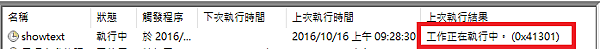 圖說:工作正在執行中。(0x41301) <- 跑了好久都還是正在執行中= ="