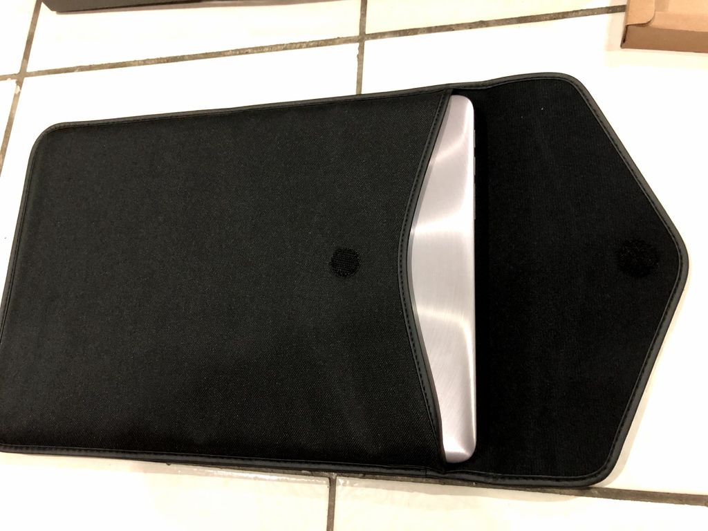 筆電拿起來,底下有 筆電保護套、VGA 轉接頭 和 RJ56 轉接頭。
