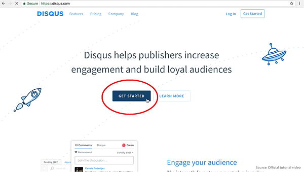 1. 首先,前往 Disqus 官網,按 GET STARTED 並且登入。