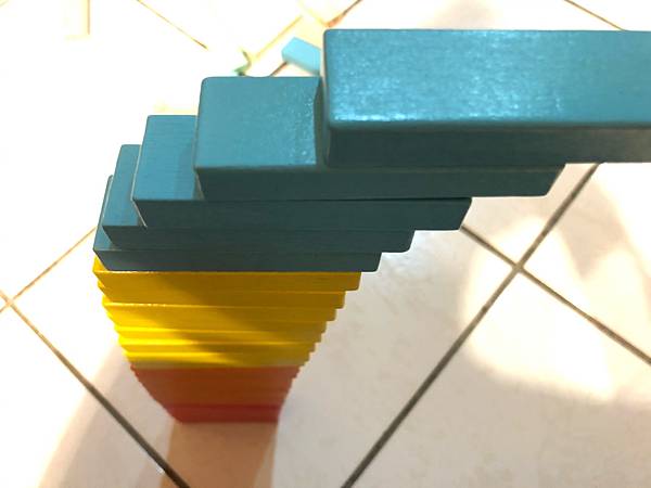 可以看出,最上面那塊骨牌其實已經整塊凸出去超過基座了!
